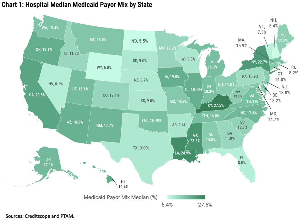 The size of the potential federal cuts remains unknown as the tax bill is actively being marked-up by the Senate, and the mechanism through which federal savings may be achieved, whether through eligibility rules modification or reduction in Federal Medical Assistance Percentage (FMAP) is still unclear. Ultimately, any reduction in federal funds shifts more of the cost burden to state governments and municipal obligors who are downstream beneficiaries of state funding.
